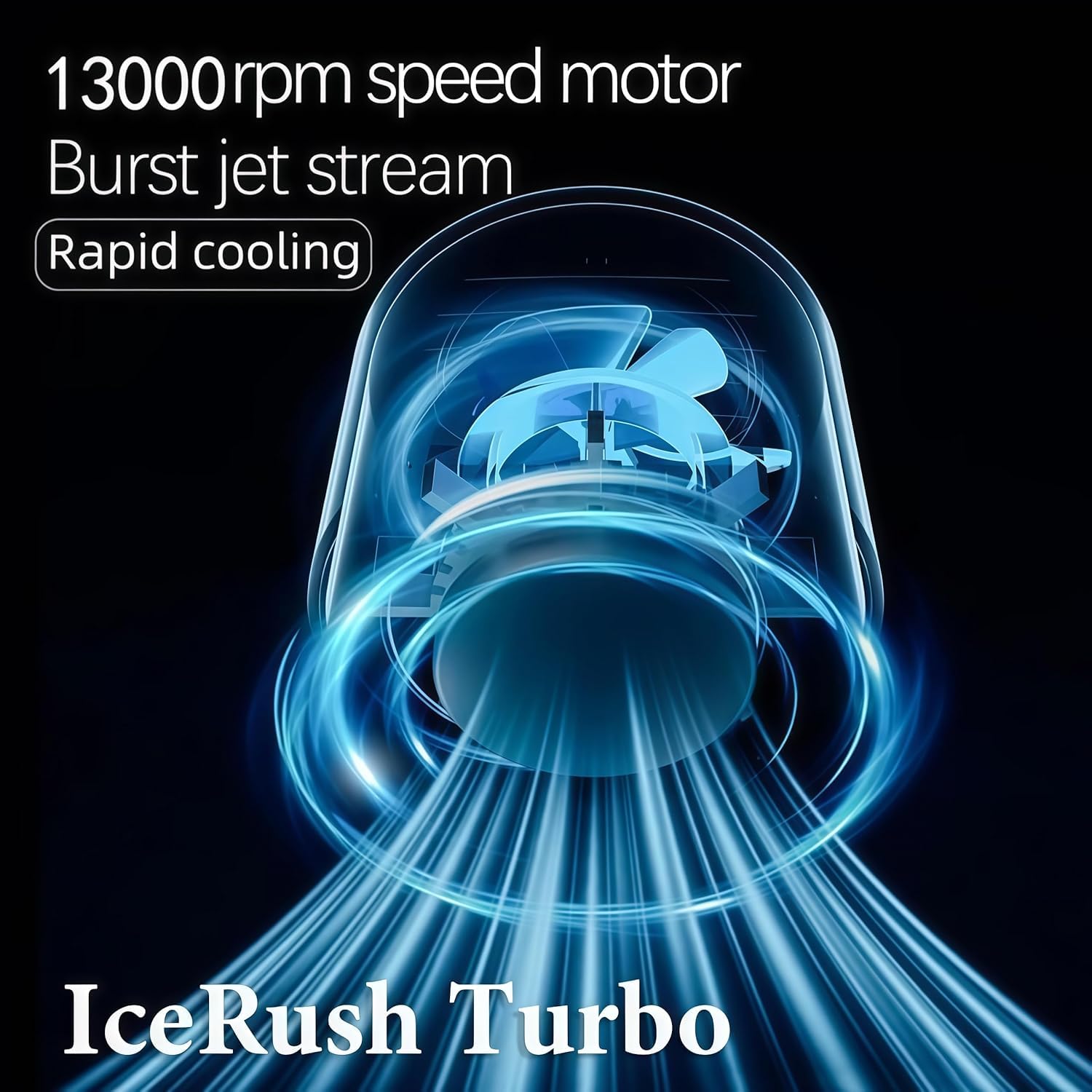 Equipped with a 13,000RPM high-speed motor, the IceRush Turbo delivers strong, stable wind to cool you down in seconds.